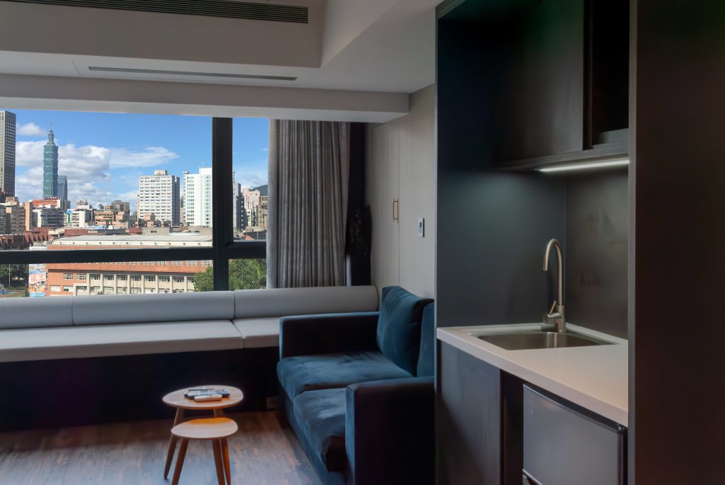採用開放式設計,將臥室、客廳、廚房和玄關區域巧妙整合,讓空間擁有極高的靈活性。每個區域都經過精心規劃,以適應不同的日常需求與社交場景。無論是個人休憩還是朋友聚會,空間都能輕鬆轉換功能,完美平衡短租住戶對效率與舒適的雙重需求。